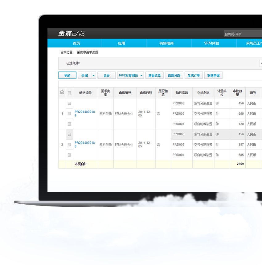 金蝶EAS采购支持自助采购、比价采购和协同采购的互联网模式。